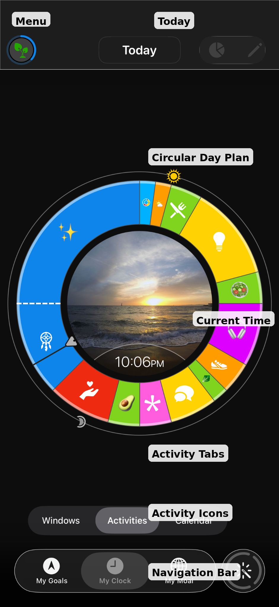 Owaves is an application that enables users to organize their daily routine and prioritize wellness goals through an intuitive interface. Unlike traditional grid-based calendars, Owaves uses a circular layout to represent the 24-hour cycle. These layouts, called Day Plans, are designed around the human circadian rhythm and can be customized to fit each user’s unique lifestyle. Users can schedule tasks, referred to as Activities, to promote healthier habits and improve work-life balance. Peer support is built through My Moai groups, where users connect with friends, sync day plans, and stay motivated together through shared accountability.